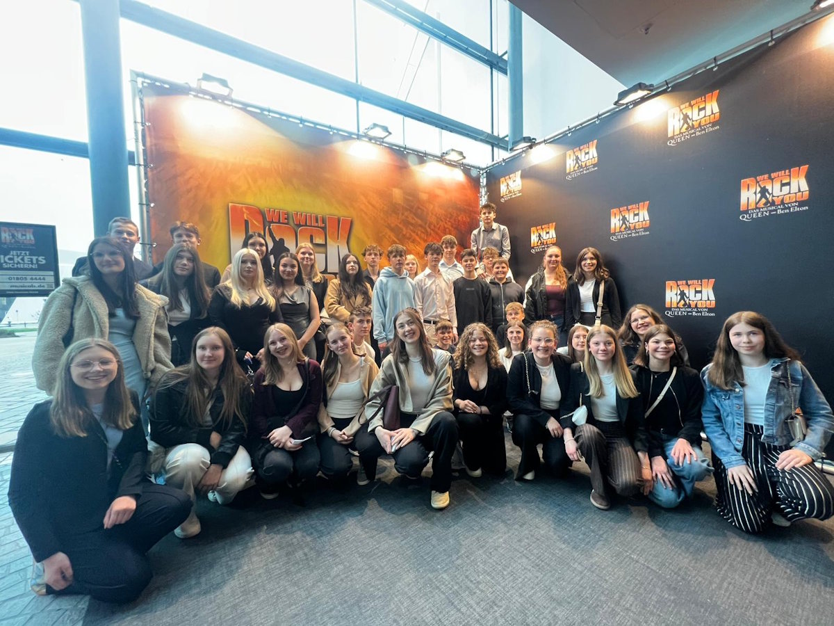 Am 14. April 2026 fand unsere diesjährige Musicalfahrt ins SI-Centrum nach Stuttgart statt. Um 15:00 Uhr starteten wir gemeinsam an der SRS und kamen gegen 17:00 Uhr am Ziel an. Vor dem Musical hatten wir noch Zeit zur freien Verfügung, die wir nutzten, um etwas zu essen oder uns im SI-Centrum umzusehen. Um 18:10 Uhr trafen wir uns für ein gemeinsames Gruppenfoto, bevor um 18:30 Uhr das Musical „We Will Rock You“ begann. Das Musical, basierend auf den bekannten Songs der Band Queen, spielt in einer futuristischen Welt, in der echte Musik verboten ist. Im Mittelpunkt stehen junge Rebellen, die sich gegen das System auflehnen und die verlorene Rockmusik zurückbringen wollen. Mit bekannten Liedern wie „Bohemian Rhapsody“ oder „We Are the Champions“ begeisterte die Show das Publikum und sorgte für eine mitreißende Stimmung. Besonders beeindruckt waren wir von den kraftvollen Stimmen der Darsteller, den mitreißenden Liedern und den energiegeladenen Tanzeinlagen. Nach einem eindrucksvollen Abend traten wir die Rückfahrt an und kamen gegen 23:15 Uhr wieder an der SRS an. Die Musicalfahrt war für uns alle ein unvergessliches Erlebnis. |