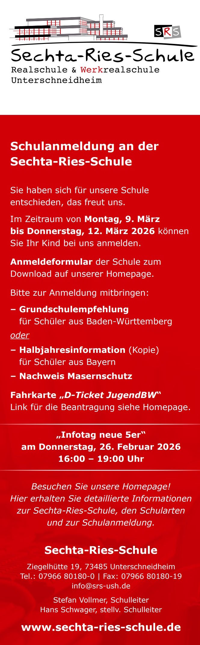 Anmeldung an der Sechta-Ries-Schule: