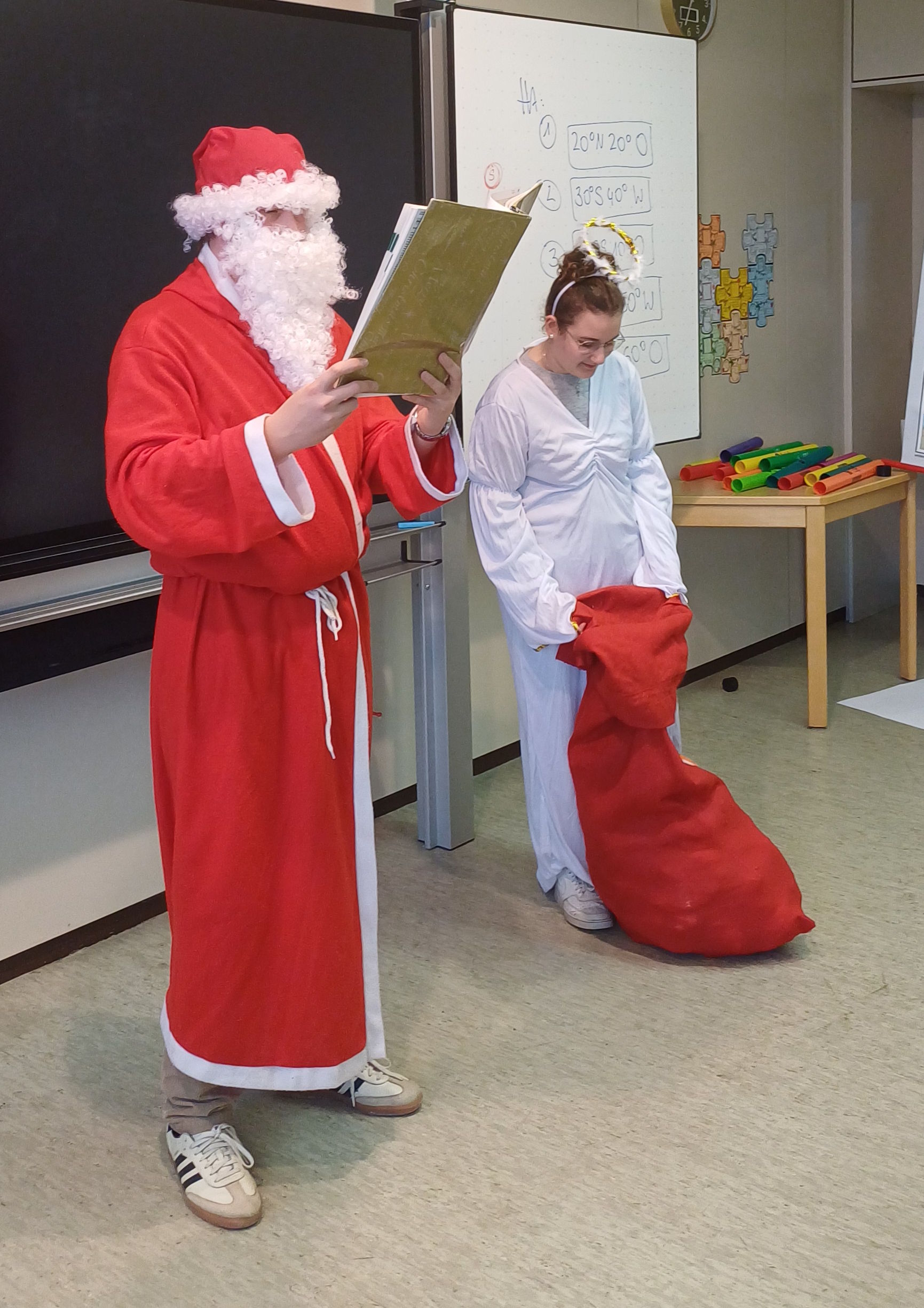 Wie bereits seit vielen Jahren Tradition, besuchte der Nikolaus auch in diesem Jahr gemeinsam mit seinem Engel die fünften Klassen der Sechta-Ries-Schule.
